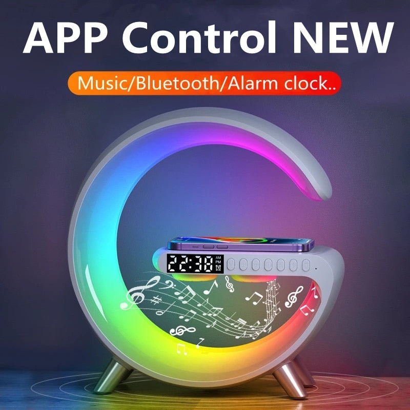 La lámpara multifunción con altavoz y carga inalámbrica es un dispositivo todo en uno que combina funcionalidad y estilo, diseñado para transformar cualquier espacio en un ambiente mágico y acogedor. Ya sea para la habitación de tus hijos, para tu dormitorio o para tu escritorio, esta lámpara inteligente LED RGB ofrece una amplia variedad de características que se adaptan a todas tus necesidades.
